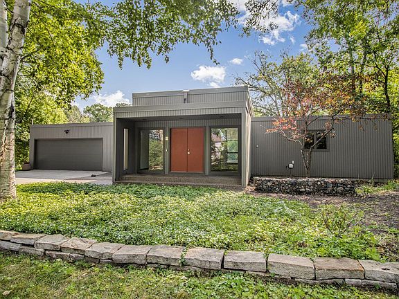 Come home to this stylish 70s modern gem tucked away in North Oaks, surrounded by nature! You'll be captivated by beautiful views from the perfectly placed floor-to-ceiling windows facing the newly landscaped outdoors with wooded pond. This amazing view can be seen throughout most of the home. Showcased in the center is a gorgeous double-sided stone fireplace. Sleek finishes and upgrades in the chef's kitchen are perfect for holiday gatherings and entertaining. Your guests will love the outdoor patio and solarium. Retreat in your ensuite w spa bathroom including timeless slate and modern fixtures. This home is waiting for you!