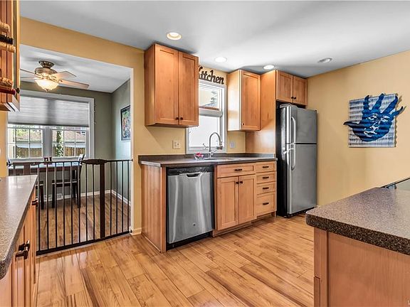 Fantastic 1825 s/f 4 bed/2 ba house in Town of Tonawanda. This home offers 1st flr bedrm & full bath, updated kit w/ maple cabs, SS appliances, solid surf counters and a bright dinette. A huge family room with vaulted clg is off the kit, overlooking the patio & yard. Beautiful hdwd flrs and fresh paint in the spacious Liv/Din combo. 3 beds and a remodeled full bath upstairs. The bsmt offers a great finished space w/ carpet, new elect & paint. Fully fenced yard has a stamped concrete patio & fresh landscaping. Roof & furnace 2 yrs; 150 amp service; Central A/C; & new entry drs make this house move-in ready and a must see. Please view the Matterport virtual tour. COVID viewing rules apply. No negotiations before Monday 6/22, showings begin Thursday June 18. 2020-08-03
