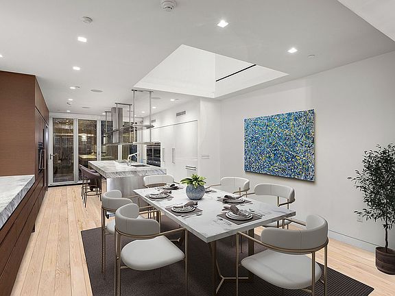 Ascending from the living room, the upper level of the home comes complete with a windowed home office with its own reach-in closets and direct access to the landscaped roof deck overlooking downtown Manhattan, the Freedom Tower, and Tribeca’s Historic District. The home has six-zone central heating and cooling and hydronic radiant heated hardwood floors throughout. Savant and Lutron smart home systems allow you to control every aspect of the home with ease.