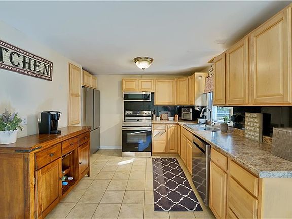 OFFER DEADLINE OCTOBER 31 BY 3:00 PM. Welcome Home to historic Potowomut! E. Greenwich zip code with Warwick taxes. This freshly painted Ranch home with 3 bedrooms, 1.5 baths features a beautiful living room with a stone fireplace that heats the entire house in the cold winter months. Hardwood flooring in the living room and bedrooms. The applianced kitchen has a sliding door leading to a large deck overlooking the 12,000+ square foot fenced in yard that abuts 179 acres is perfect for outdoor entertaining, children's play area and pets. Like to garden There is an established area for that! The finished basement has a laundry room, half bath, family room and a bar. New roof 7 years ago and an energy saving hybrid electric heat pump hot water tank installed 1 year ago saves a lot of electricity. Beautiful location just minutes to Goddard State Park and Potowomut Golf Club, E. Greenwich Historical Main Street with award wining restaurants and beautiful shops. Tollgate school system. Location, location, location! Convenient to shopping, highways, marinas. Live the Potowomut lifestyle!!