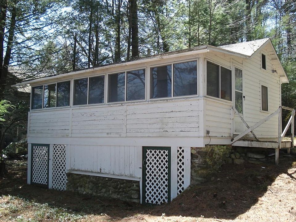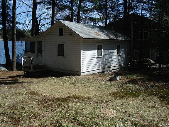 Seasonal waterfront cottage located on beautiful Wyman's Pond. Owned by one family for decades. Large enclosed porch overlooking the water. Open concept living area with kitchen/dining area, living room,and bedroom. Separate sauna building. Babbling brook. Needs some work, but well worth the effort. Convenient location with easy access to Route 2. Offered in "as is'' condition.