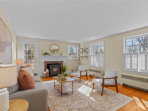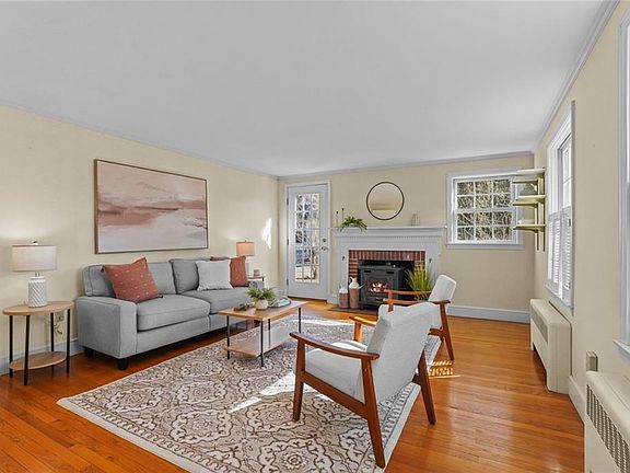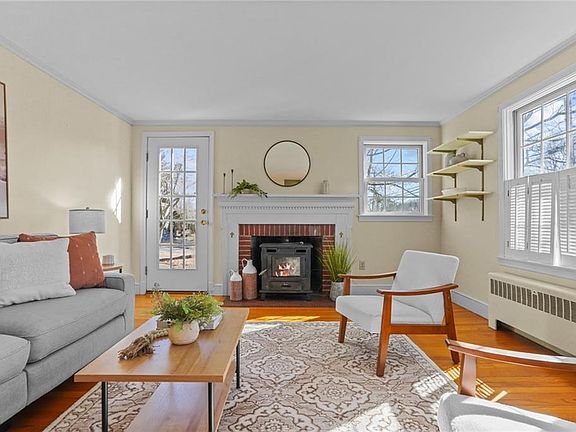 Located on a corner lot in Barrington, this charming Cape exudes warmth, character, and the enduring craftsmanship of the 1960s. Lovingly maintained for 44 years, the home showcases quality construction and an array of valuable amenities. Hardwood floors, plentiful windows and thoughtful spaces blend classic charm with desired conveniences. A sunlit living room features a cozy wood fireplace and a glass door leading to a mahogany deck. The inviting kitchen features solid wood cabinets, hardwood floors, and stainless steel appliances, perfectly positioned next to the dining room, where a built-in corner hutch and chair rail add timeless appeal. Adjacent to the kitchen, a versatile screened-in porch offers a coveted three-season retreat, easily adaptable for year-round enjoyment. A first-floor office or bedroom provides sought-after flexibility. Upstairs, find three spacious bedrooms with hardwood floors. The primary bedroom features three closets & sweet reading nooks. The second bedroom has two closets, while the third overlooks the serene backyard with an outdoor shower and shed. An updated second-floor bath features stacked laundry for added convenience. The lower level offers a playroom, workshop, and secondary laundry space. Thoughtful modern upgrades include solar panels, a whole-house generator, and mini-split air conditioning. Ideally located near Barrington Middle and High Schools and the East Bay Bike Path, this welcoming home is ready to welcome its next steward.