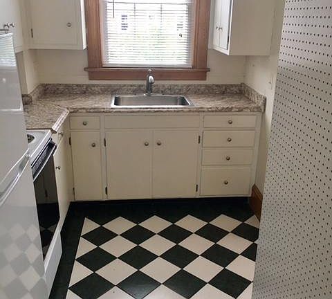 Faux fireplaceGalley kitchenGleaming hardwood floorsTile bathHigh ceilingsTransom windowsLarge bedrooms