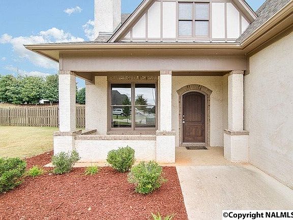 Tudor style home with arched front doorway + expanded 8' x 8' front covered porch. Home features new hardwood flooring through out, soaring ceilings in GR + gas fireplace. This freshly painted home is 3BR, plus bonus or 4th BR, formal dining room, open kitchen with island and relaxing breakfast nook area. The master suite has glamour master bath with whirlpool tub, double vanities + separate shower. Private cul de sac lot with fencing. 12 x 14 screened porch for relaxing! Less Than 1 Mile from Gate 7 REDSTONE ARSENAL. Lake Forest amenities offers waterfall pools, 7100 Sq Ft clubhouse, 31 acre stocked fishing lake, tennis, fitness center, play park, walking & biking trails around the lake!!