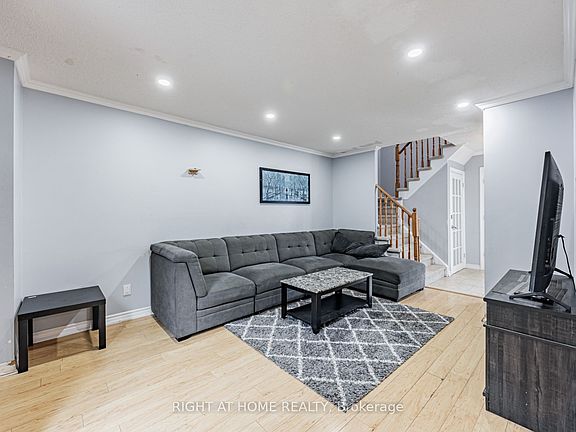 Welcome to this warm and inviting 3-Bed Family Home in Prime Ajax Location! Warm & inviting with spacious kitchen, ample cabinets, stylish backsplash & built-in microwave. Bright open-concept living/dining w/ walk-out to fenced yard & large deck, great for kids & entertaining. Cozy broadloom in stairs, hallway & primary BR. Crown moulding throughout adds elegance. Home comes furnished landlord open to negotiating lease cost based on furnishing needs. Steps to schools, parks, transit, library & shopping. Mins to Hwy 401, GO Station & Costco!