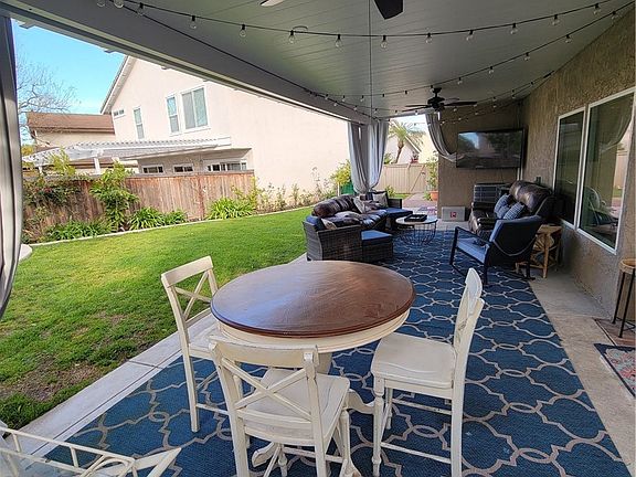 Rare Opportunity for a yard in Woodbridge, without freeway noise. Tons of updates, including; giant covered outdoor living space, fully remodeled kitchen, all bathrooms, stairs, fireplace, interior paint, custom windows, carpet, cabinetry, wall coverings, brand new HVAC, new solid wood interior doors and fixtures throughout, updated siding, eaves and facia, etc. Fruit Trees are peach (hundreds), lime, lemon, apple, grape and 2 avocado (avocados are not yet producing). Garage has tons of storage, cabinets, built-ins and sink. Downstairs bed & bathroom for guests and mom. Cook on gas stove and gas hook-up for BBQ. Great Location at end of cul-de-sac for extra parking for parties and a super short walk to tennis, kids play ground and the newest, fully remodeled, resort-like pool in Woodbridge which is one of the year-round heated pools, hosts the Woodbridge swim team and lessons. This type of property in Woodbridge is rarely available, especially with this many updates, move-in condition and will not last long. Approved for solar and plenty of room to add hundreds of sq. ft. in a variety of ways.