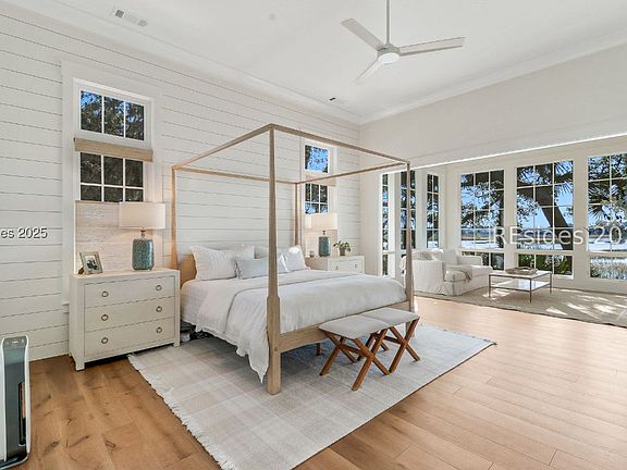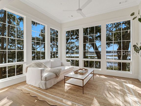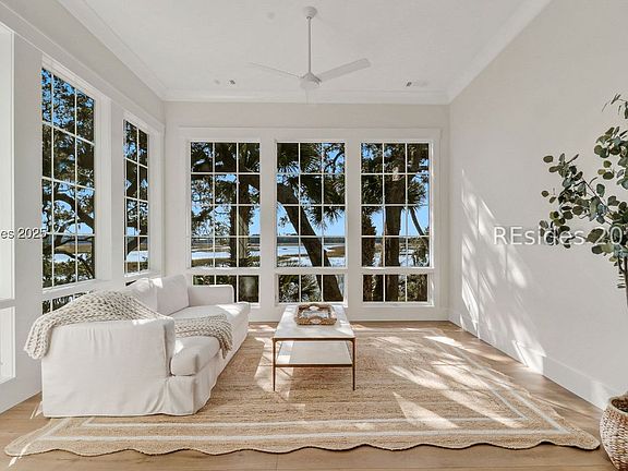 FULLY RENOVATED marsh front home on .73 acres in gated Windmill Harbour. Enjoy stunning 180 degree views of Jarvis Creek spanning to the Calibogue Sound. Breathtaking natural light floods this meticulously renovated custom home where no detail was spared. Watch boats in your backyard and beautiful wildlife from the picturesque moss draped live oaks and palms. The interior boasts custom inset cabinetry throughout, gorgeous white oak floors and custom island with timeless honed Carrara marble throughout. The chef's kitchen is fully equipped with paneled appliances, Wolf dual fuel range, and SubZero. Dual farm sinks, unlacquered brass fixtures and thoughtful details include an appliance cabinet and abundant storage. Oversized walk in pantry, custom lockers, and detailed woodworking elevate this expansive home. The oversized primary suite includes a beautiful sunroom and expansive bathroom and closet. Gym equipment, sauna, golf cart and furnishings are negotiable.