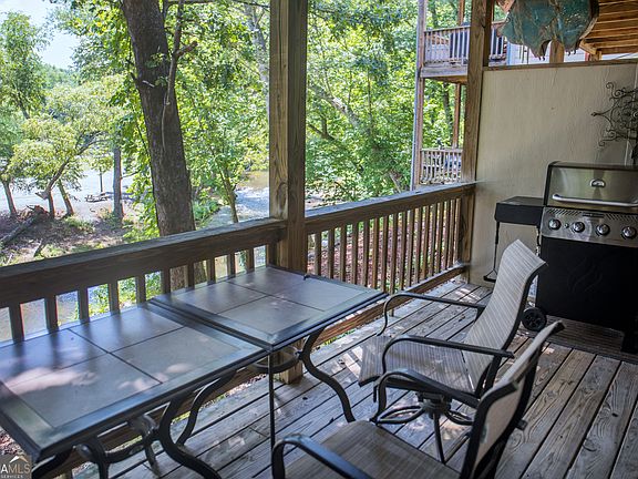RIVER FRONTAGE in HELEN GA. This Turnkey Short-Term Rental has 3 BR and 3.5 BA the perfect location on the the Chattahoochee River. Just a few minutes from all the best vacation activities, tubing on the river, downtown dining and shopping. This is a must see for the person seeking an established income producing property. This home has had many upgrades in the past few years. Upgraded flooring, granite counters in the kitchen & two hot tubs! Enjoy the sights and sounds of the Chattahoochee River from the 2 covered decks and the ground level walk out patio. Call for your appointment today! Frequently rented! Funishings are negotiable.