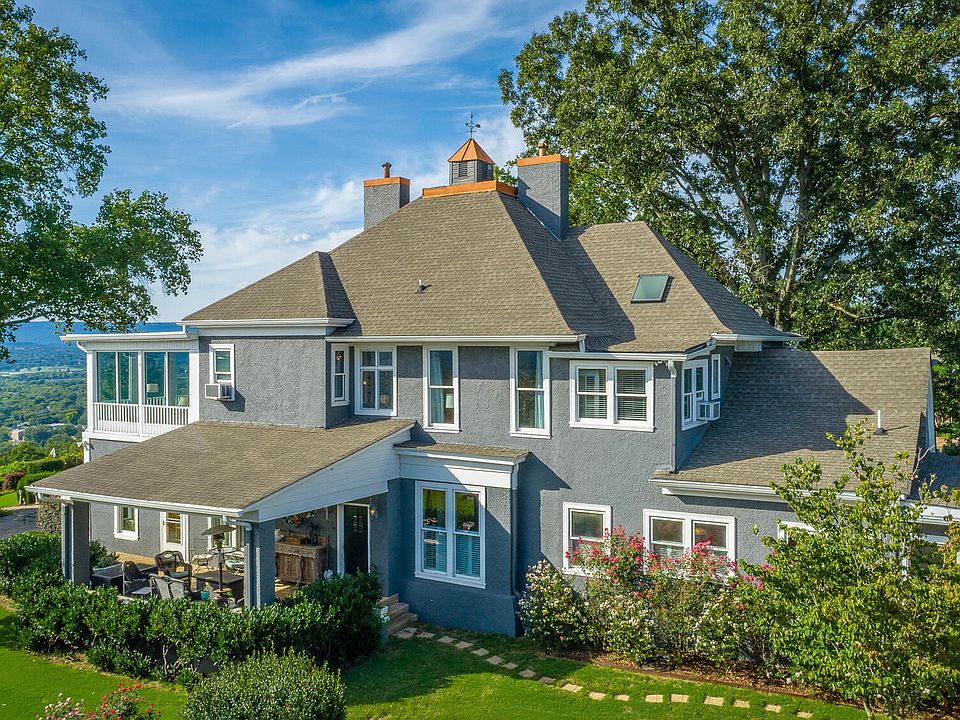This home contains one of the best views of the Downtown Chattanooga area and surrounding mountains. This is a classic restored old house with modern appliances and decor. Over 4000 feet of antique heart pine through out the house and 10 foot high ceilings. All trim was custom fabricated for this house. A 600 square foot 2 bedroom 1 bath Carriage house sits within a few feet of the home. The kitchen contains concrete counters with inlaid copper and glass. There are brass trivets inlaid into the counter tops. There is a large pantry in the kitchen. All appliances contain the GE mongram and matching stainless steel. The kitchen cupboards contain original glass from the 1900 windows and 2 kitchen sinks with disposals. There are 10 foot ceilings throughout. The pantry has an ice maker, wine cooler, bar sink, built in china cabinets and built in hangers for glassware. Sunrooms are on each floor. The 16x34 downstairs sunroom has high insulation low E windows, Italian tile with ribbon inlay border. There is a 180 degree view of the City of Chattanooga and surrounding area. There is French door access from the living room and bedroom. Throughout the house there is custom designed heart pine treads and handrails with a North and south stairs to landing upstairs. Upstairs is a suite with sitting room which leads to a custom tile bath, laundry room with a huge cedar lined closet with built in drawers and shelving. Also in the primary bath is a sunken tub and skylight. Upstairs man cave/sunroom with concealed lighting and ceiling fans has a better 180 degree view of the city. The room contains Italian tile with inlaid ribbon. It has its own mini-split system for heating and cooling. The entire house has custom made crown molding, flutted window and door trim, baseboards, shoe molding, and trim designed in 1800's style. Did we mention the Carriage House? 2/1, 600 square feet.