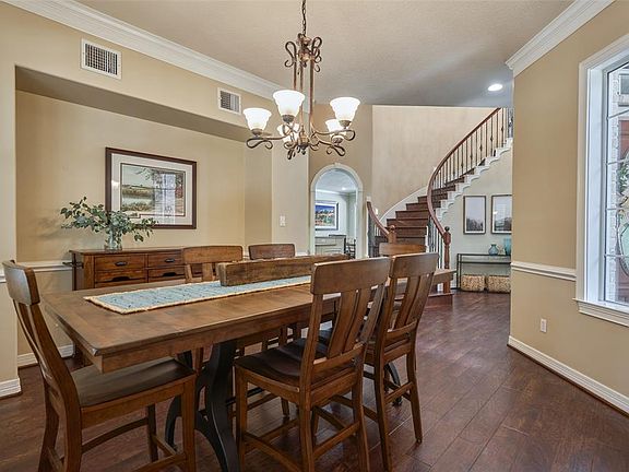 Majestic custom home in highly desirable Stellar Point. This amazing 4 bed, 3.5 bath, 4 car garage has everything your family needs! After entering the home to a captivating spiral staircase, you'll then notice the neutral paint, extensive trim work, plantation shutters & upgraded wood floors that flow seamlessly from room to room. Sit in the formal living room & enjoy the gas log fireplace or gaze out the 2 massive picture windows to the mature landscaping in the backyard or move into the open concept kitchen, breakfast nook, & family room. The kitchen features stainless steel appliances, double ovens, gas cooktop, wine fridge, recessed lighting, walk-in pantry, & awesome mud room. Also downstairs is a formal dining, study, & lovely master suite w/ dual closets. Upstairs you'll find three additional bedrooms, 2 full baths, gameroom, and a media room. Stepping outside to a breathtaking & very private backyard w/large covered patio, sparkling pool/spa, gas fire pit & no rear neighbors.