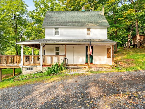 Welcome to 46 Neversink Drive, a charming two-story 1880 home in Port Jervis that blends timeless character with modern upgrades. This 2-bedroom, 1-bath residence offers 1,037 sq. ft. of living space and has been thoughtfully updated with three brand-new mini splits with heat, a furnace only 5 years old, updated well pump and water heater, upgraded electric throughout, and brand-new siding. A spacious deck provides the perfect setting for entertaining, while the property’s five garage spaces add incredible flexibility, including electric in the detached 2-car garage, dedicated parking for a camper beside it, and the potential to rent garages for extra income. The sale also includes two additional adjacent lots — 48 and 50 Neversink — giving you a rare total of 1.15 acres for expansion, recreation, or added privacy. Ideally located just minutes from the Metro-North Port Jervis Station for a convenient commute, and close to The Lynx at River Bend Golf Club, this property offers historic charm, modern comforts, and endless possibilities all in one.