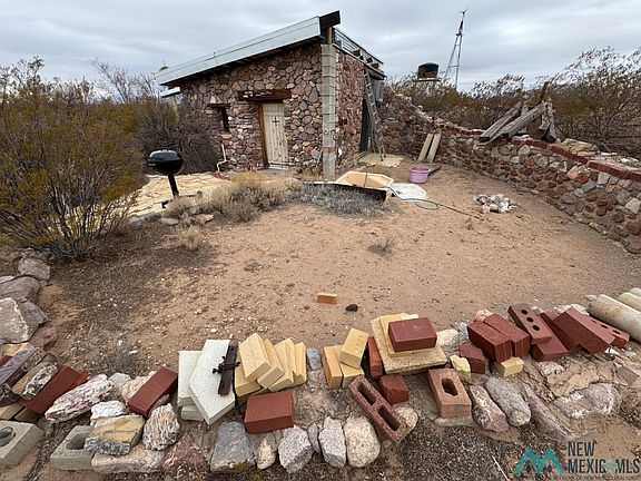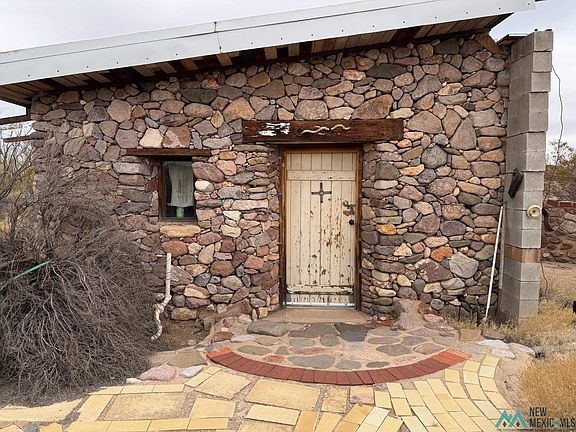 This very special off-grid property is in need of TLC and a caring owner willing to turn it into a true showcase. The property consists of two adjacent 20-acre parcels with a 16x16 ft custom-built "tiny home", artistically crafted from local rocks...each hand picked and placed by the builder. The tiny home has a metal roof with gutters to collect rain water. Power is provided by solar panels and a small wind turbine (both likely in need of repair and upgrading). There is a domestic well with solar pump, an outside bath with shower and cow-tank soaking tub, but a septic system is needed. As shown in the photos, there are abundant building materials remaining on the property that convey with the sale: large red bricks, heavy lumber, steel roof tresses, ceramic red-tile shingles, fire bricks, windows and more. There is an approx. 28-foot vintage single-wide travel trailer mounted on blocks that has been used as a "guest quarters", but could be converted to office space or storage. The property is located along the western edge of the San Simon River bed (dry most of the year) with stunning views of the nearby Peloncillo Mountains to the east and Cave Creek Canyon in the Chiricahua Mountainsa a few miles to the west. The property has a "spiritual" feeling to it since the area was once occupied by ancient native American peoples. Vegetation consists of mainly of yucca, creosote, and some cacti. The land is not in an HOA and there are no CCRs. The property is totally private and situated at the end of a gravel road; however, the sister communities of Rodeo, NM and Portal AZ are conveniently located just minutes away. This is a great opportunity for someone motivated to bring this gem back to life!