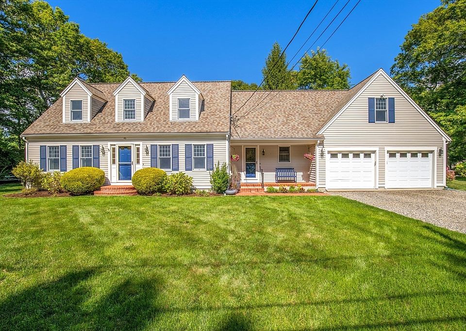 In the heart of Cotuit, a quaint coastal village, this three bedroom home within a short walk to the beach, combines classic character with modern amenities on nearly an acre of private landscaped grounds with a perimeter fence. With over 1,800 sq. ft. of living space, the open floor plan creates a bright, airy feel and features a cathedral-ceiling living room with fireplace, an updated gourmet kitchen with center island, open to a formal dining room — ideal for everyday living and entertaining. Enjoy 1st floor primary suite/private bath, plus a half bath with laundry. The 2nd floor offers two spacious bedrooms sharing a full bath. Expansion potential awaits above the two-car garage with plumbing and electric already in place. Step outside to the deck and the sunny, level backyard — perfect for entertaining, recreation, or a pool/spa. Begin enjoying Cotuit’s four beaches, Golf Course, Kettleers baseball, town dock, boat ramp, Kettle Ho Restaurant, Fresh Market, and Center for the Arts.