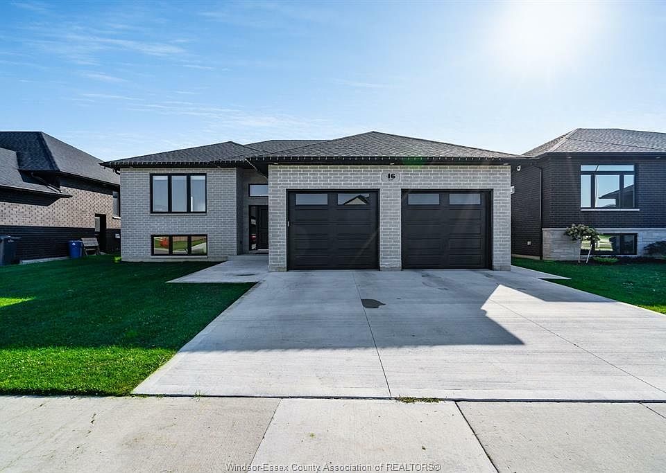 Welcome to 46 Olive, this beautiful 3 year old full brick raised ranch is in one of Leamington's most desirable neighborhoods. The home features 3 spacious bedrooms with two more ready to be finished on the lower level. two full bathrooms on the main floor including a spacious ensuite. Beautiful modern kitchen with quartz counters and a large island. Large covered patio in the fully fenced rear yard with an extra large concrete patio for entertaining. The basement is fully roughed in with two bedrooms, an office, bathroom and a large family room just waiting for your finishing touches.