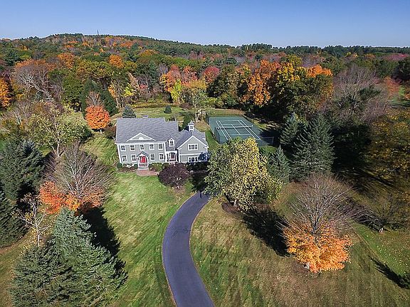 Beautifully designed and crafted colonial by award winning architect, Laine Jones. Attention to detail throughout. This spectacular 10-plus room includes 4 bedrooms, 2.5 baths. 1st floor boasts a formal dining room, living room, office, fireplaced family room with custom cabinetry and moldings, eat-in kitchen with custom red birch cabinetry and granite countertops, mudroom with storage and half bath and oversized two car garage. 2nd floor has three well-appointed bedrooms on one end with a full bath, laundry area, study/arts and crafts nook and then you enter the luxurious master suite with picturesque views which is truly a slice of heaven! A walk up 3rd floor offers easy access to storage, or potential finished space. Pella windows/doors throughout. The property is ideal for outdoor entertaining. A screened porch leads to an oversized bluestone patio, sport/tennis court, and backyard that offers a private setting backing up to 40 plus acres of conservation land.
