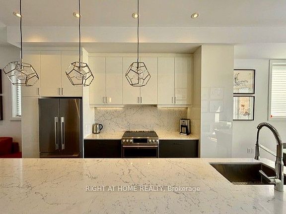Rare opportunity to purchase this desirable end townhome unit in the Perth and Sterling neighbourhood. Designed by Peter Clewes and completed in 2019, this 3 bedroom + 3 bathroom customized upgraded home is furnished with expansive windows facing south, east and west filling the home with natural light. The upgraded kitchen is the heart of the main floor including an extra large island, upgraded cabinetries (incl. pot drawers and pull outs), quartz backsplash, and SS appliances. The dining room leads to a generous 300+ sqft back patio perfect for entertaining, outfitted with powered awning and b/i gas-line barbeque. With no obstruction in the back, the deck is simply a picturesque spot to watch the sun set along the tree-lined vista on the west side. On the 2nd floor are two bedrooms, 4pc bathroom, and laundry area with upgraded full size stacked washer and dryer. The primary suite located on the 3rd floor is a private retreat with an east-facing patio, generous-sized bedroom large enough for a king bed, walk-in closet with b/i closet organizer, and a bright and airy upgraded spa like bathroom. The primary ensuite includes double vanity, custom toilet partition and large walk-in rain shower. The 8-ft ceiling ground floor, lit with a large east-facing window, gives direct access to 1.5 garage, a powder room and a large flexible space (suitable for exercise, work or play). The house includes a dual-zone HVAC system, power operated blinds for select windows, and CATV wiring catering to a comfortable lifestyle. This home is situated in one of the most desirable neighbourhoods with bike or walk access to High Park, Roncesvalles and Junction area. Excellent transit proximity with a few minutes walk to Bloor GO and UPX, and Dundas West TTC stations. Direct access to W Toronto Railpath and minutes from MOCA, cafes, restaurants, breweries. This is a rare opportunity to enjoy a newer, modern, functional and low maintenance home that give you the best balance of city living.