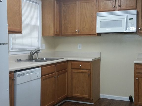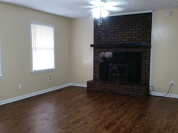 Simulated hardwood floors and w-t-w carpet throughout. Roomy living room with antique fireplace heater, ceiling fan and large sunlit windows. Open air kitchen w/appliances provided as a convenience, dinette and access to enclosed pine porch/laundry room. Bedrooms are 1 king and 2 queen bed sized with ceiling fans, carpet and the master has an en-suite full powder room and bathroom. Excellently priced for fenced in home on a cul-de-sac in a hidden community near Stars and Strikes Family Entertainment Center . Must see and I will tell you where the quaint little consignment shop is located.