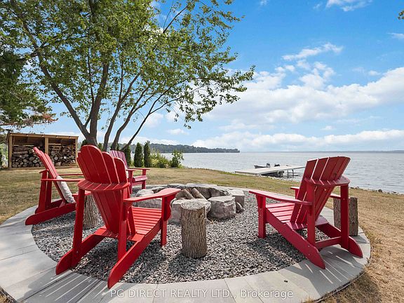 Visit REALTOR website for additional information.Your dream home awaits! Welcome to local builders stunning 5-bedroom3-bathroom Lake Scugog waterfront home in the charming community of Washburn Island. Enjoy sunsets all year long from the 90x360 ft south-west facing lot which offers ample privacy & sides on a municipal green space. Built in 2020, this exceptional raised bungalow offers 4000 sg ft of living space w/ an open-concept layout that boasts of high-quality finishes & upgrades. Main floor features tons of natural light w/ panoramic views of the lake. The kitchen, living & dining room feature luxury vinyl flooring, 9 ft Ceilings, wainscoting, crown Moulding, 2 coffered ceilings & linear gas fireplace w/ B/I cabinetry. The massive kitchen is a dream w/ ample storage featuring custom cabinetry & oversized kitchen island. The gorgeous master bedroom has an Ensuite w/ large walk-in closet. The sizeable 2nd & 3rd bedrooms each contain a feature wall & crown Mouldings & are complemented by a beautiful full bath. Conveniently located on the main level, The laundry room & mud room are finished w/ custom cabinetry & access to the double garage. Lower level offers 9ft ceilings, large above grade windows, 2 bedrooms, full bathroom, huge recreation room w/ kitchenette, music/multimedia room, & a home office w/ custom B/I desks & cabinetry. The incredible backyard is just as impressive as the inside, featuring a large, covered porch w/ glass railing, armored stone fire pit, a sloping beach rock shoreline, 30-foot dock, interlocked patio with propane hookup for BBQ, vegetable gardens, under deck storage w/ enough space for ATV's, sleds, or lake toys, & southwest views w/ breathtaking sunsets. Additional highlights: double bay garage w/ workbench, wall cabinets & a sink making the ideal workshop, a separate single bay drive-through garage that provides access to the backyard. This stunning modern home offers countryside peace w/in a short drive to Port Perry & Lindsay.
