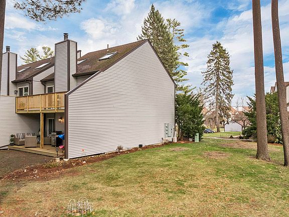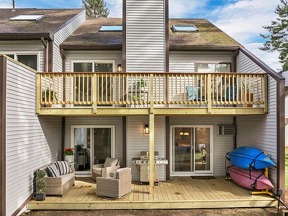 WELCOME TO 46 PONDVIEW DRIVE located in the desirable HORSESHOE POND CONDOMINIUM'S Neighborhood. Your perfect opportunity to find this 2 Bedroom, 3 Bath, END UNIT Townhome with a 1 car detached Garage. Feel welcomed by the Covered Entry that leads you to a open, bright, 2 STORY FOYER. Let this KITCHEN awaken your culinary skills with stunning granite counter tops, SS appliances, including Gas Stove, soft close cabinets and pull outs. Just beyond, take note of a unique ALCOVE area, perfect for sharing appetizers, brunch or your Barista Station. The DINING ROOM opens to the spacious LIVING ROOM with WOOD FIREPLACE. Each side of the fireplace is flanked by sliding glass doors, which open to the NEW DECK. This ground level, covered deck offers endless possibilities for outdoor living and entertaining. No stairs allow you to simply walk out to the open side yard and tree line back yard. The PRIMARY BEDROOM SUITE with private NEW BALCONY has a RENOVATED PRIMARY BATH featuring, a double vanity, walk-in shower, heated whirlpool tub and walk-in closet. In addition, there is a Primary Suite Loft with ample storage. Great for a Home office or Retreat to read, watch TV, Yoga, meditation or just enjoy hobbies. The second Bedroom is conveniently located to the 3/4 bath. Lower Level, Finished Family Room terrific for storage and activities. Enjoy the Tennis Court, Horseshoe Pond docks for canoeing, paddleboard and access to the Walking-Nature Trail with pond views.