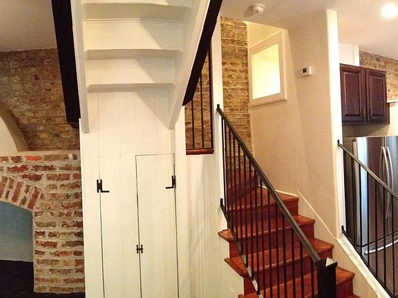 Historic floorsTankless water heaterStainless steel appliancesExposed brick wallsCustom cabinetsStacked washer and dryerCarrara marble bathrooms