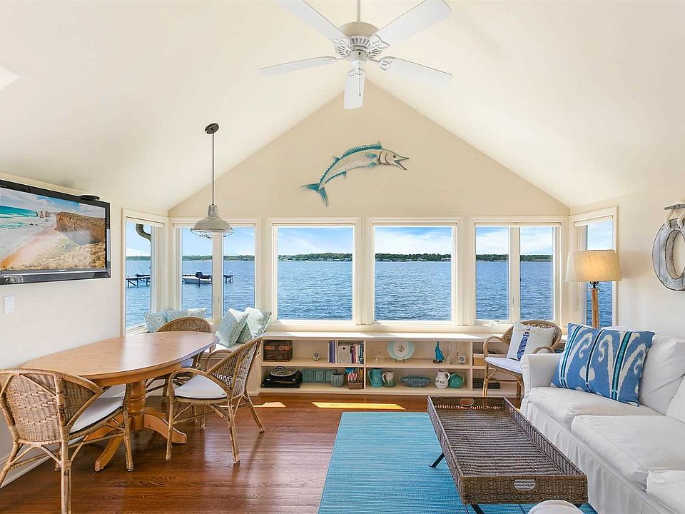 Located South of the highway on gorgeous Tiana Bay enjoy summer living in your quintessential Bay Front Cottage. Complete with your private beach and dock this sun drenched, 2 Bedroom 1 Bath Co-Op is beautifully updated and ready for occupancy. Watch the sun set on your 230 sq ft private deck overlooking the expansive bay, or let the light envelop you inside in air-conditioned comfort. All is surrounded by beautiful landscaping and lush lawn. This property includes plenty of storage.