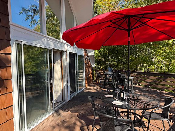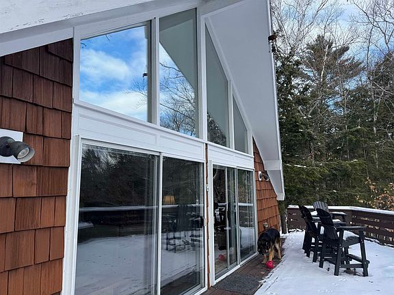 Ready to Embrace Winter in the Woods? Love to ski, tube, skate, or ice fish? Dreaming of cozy evenings by the fire watching snowflakes fall outside your deck window? Or maybe you’d rather start your morning watching wildlife wander through your yard? If you said yes to any of these, you need to see 42 Red Pine Road in Madison — just around the corner from King Pine and Purity Spring Resort! This wonderful mountain home has a living room you’ll never want to leave — soaring cathedral ceilings, dramatic floor-to-ceiling windows framing views of the New Hampshire hills, and a wood-burning insert that keeps the space warm and inviting all season long. With 4 bedrooms plus a bonus playroom, there’s room for everyone to relax and recharge. Set high on a private, wooded hill within the King Pine Area Association, this home offers the perfect blend of comfort and seclusion. Step out onto the freshly painted deck and soak up the sunshine — just as Toby loved to do — while keeping an eye on the cozy fire through the two sliders that connect the deck to the main living area. Meanwhile, you could often be found inside, curled up on the couch, enjoying the warmth of the fire. And here’s the best part — this home comes completely furnished! Just pack your toothbrush, grab your warm clothes, hiking boots, or skis, and start enjoying the mountain lifestyle right away. While it’s getting a bit chilly for kayaking on Purity Spring, that only means winter fun is just beginning!