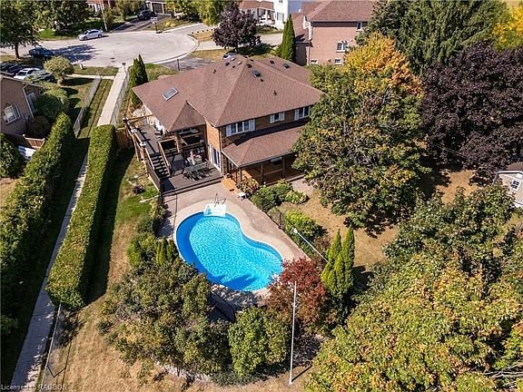 Welcome to this spacious and historic backsplit home, once owned by the previous mayor of Bradford, offering the perfect blend of charm and modern amenities. Situated on nearly a half-acre lot and backing onto the serene 10 acres of Fuller Heights Park, this property provides both privacy and convenience. This 5 bedroom 3.5 bathroom home offers several entrances and an ideal layout for an in- law suite conveniently located close to schools and parks. The home features elegant hardwood oak flooring, stairs, & railings meshing in with that quality travertine stone accent in the garage foyer & laundry room. This home has undergone several updates including kitchen, electrical, pool equipment, eaves trough, appliances, decks, windows, venting & more. It also features an 88,000-litre in-ground pool (32x14) with an 8ft deep end, heated by a natural gas system. This home boasts storage and would be an absolute dream for a large family by having storage, a large attached garage, a 10x 16 storage shed on a concrete pad, and large private driveway with an abundance of parking while being at the end of a quiet cul-de-sac. The yard is easily maintained by the 6 zones of irrigation controlled electronically ensuring the best yard on the block. This home is a rare opportunity to own a piece of local history while enjoying modern comforts and upgrades.