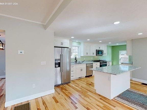 Look here at this RARE Updated and completely improved in 2023 in town Colonial. Inside you will find All new Kitchen, all new stainless steel appliances & wide plank wood flooring. All brand new appliances will make all cooks happy! Plus a corner nook seating 3 or 4 sunny bedrooms with ceiling fans 2 new full baths easy care deck overlooking the spacious private yard. Very conveniently located in the town of Westborough. Main floor bathroom has been updated with all New windows, floors Ceilings Walls etc. Entire house has recently been painted inside and out. Hardwood floors replaced or refinished, new lighting throughout, all new windows installed. New Heat and A/C & on Difficult to compare the quality, craftsmanship, location and all the new features this home offers. Please note! Original home built 1890 Complete renovation 2023. Town Drain Easement on right side of property. Large Level lot with brick patio, easy access to basement Could be 4 bedrooms w 1 on 1st fllor