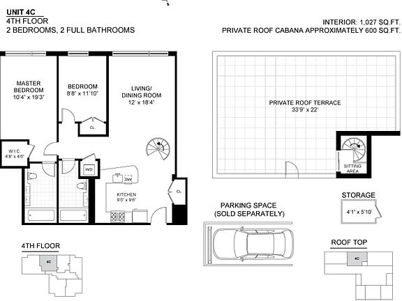 apartment includes a HUGE 600 sq ft BONUS PRIVATE ROOFTOP with commanding views -