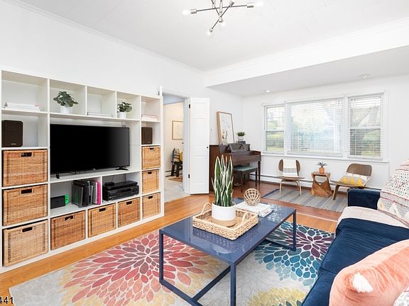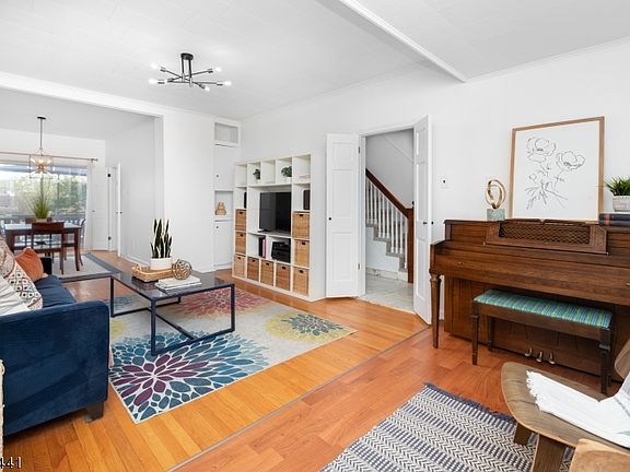 Welcome home to this bright and sunny home just steps to all that South Orange Village has to offer - from restaurants and shops, to easy commuting to NYC! This home is IT! Enter the front door through the mudroom/entry w/ a large hall closet to the foyer with staircase. Brownstone feel with soaring ceilings! To the left find the spacious living room that flows beautifully to the generous dining room. The dining room is graced w/ bright sliders that go out onto the large back deck - ideal for entertaining or dining al fresco! The generous kitchen provides ample cabinet and counter space and overlooks the back deck and yard. Upstairs, enjoy three bright & spacious bedrooms & updated hall bathroom. The walkout finished basement offers another bedroom & full bath!