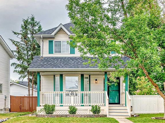 Location truly matters, and this charming home offers the best of both convenience and comfort. Ideally situated near walking paths, schools, parks, and a shopping centre with grocery stores, theatres, restaurants, and a wide variety of shops, everything you need is just minutes away. With quick access to both Stoney Trail and Deerfoot Trail, commuting throughout the city is effortless. Immaculately maintained and offering over 1,600 square feet of living space, this cozy home welcomes you with a front porch set along a beautiful tree-lined street. The large reverse pie lot provides extra privacy with generous space on both sides of the property, while a paved back alley adds distinction. Inside, the spacious foyer leads to a bright and inviting living room. The kitchen provides abundant cabinetry and room for a full-sized dining table, with access to a large deck complete with gas line—perfect for summer barbecues. Laminate flooring flows throughout the main level, which also features a half bath with laundry and the convenience of a built-in vacuum system with attachments. Upstairs, you’ll find three comfortable bedrooms, including a generous master bedroom with a walk-in closet. The main four-piece bathroom has been tastefully updated. The fully finished basement expands your living space with a large recreation room, an additional bedroom, and another full bathroom. The backyard is fully fenced with fresh sod, simple landscaping, and plenty of room to enjoy. A double detached garage that is heated, fully drywalled, and insulated completes the package. Recent updates include brand-new shingles on both the house and garage, new siding, fresh sod in the backyard, and a freshly painted deck. This home shows pride of ownership throughout and combines comfort, functionality, and an unbeatable location. A must-see property that truly shines!