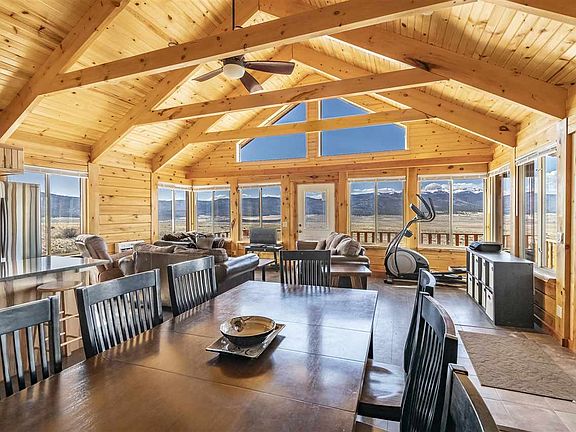 There is simply not a better view in all of Angel Fire. To the west, the Wheeler Peak range.... to the north, Baldy, Touch Me Not, Eagle Nest Lake and views all the way to the mountains of Colorado.... to the south, views of the Angel Fire ski area and mountain bike park! Situated just outside of Angel Fire with no resort dues, but just 10 minutes to the ski/mountain bike area and golf course. 10 minutes from Eagle Nest State Park and Lake. 40 minutes to Taos, 35 minutes to Red River, 2 hours to Santa Fe, and 3 hours to the Albuquerque airport. The log sided cabin was designed to be great rental property, and it is. Over $90K in rental income over the last 2 years. Summer and winter perfection! We'll provide rental history upon request. LOTS of return visitors. Granite counter tops, stainless appliances, 2 gathering areas, 2 coffee decks and a covered deck with the big views. What a great place to make generational memories AND some good income.