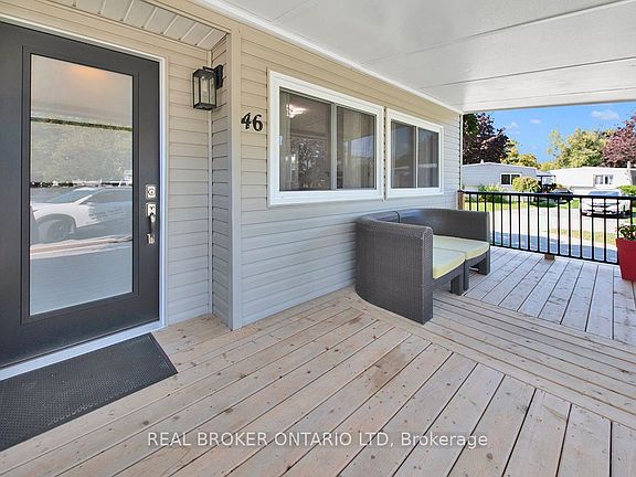 Welcome to this beautifully updated home in Grand Cove Estates, tucked away on a quiet court. The covered front porch is the perfect spot to unwind, ideal for chatting with neighbours or enjoying a little people-watching. Inside, the open-concept design is bright and inviting. A cozy gas fireplace welcomes you into the living area, while the modern kitchen impresses with stainless steel appliances, a centre island with seating, pantry for storage, and brand-new cabinetry with pot drawers and soft-close features. Stylish touches include a tile backsplash, updated lighting, and a new sink and faucet. From here, step out to a private 16 x 7 rear deck, a great place for morning coffee or outdoor dining. The primary bedroom offers plenty of storage with both a walk-in closet (with laundry) and a double closet, along with a refreshed 2-piece ensuite. A renovated main bath, new luxury vinyl plank flooring, updated trim, California ceilings, and vinyl windows add to the move-in ready appeal. Grand Cove Estates is a vibrant 55+ land lease community where resort-style amenities meet the charm of Grand Bend living. Just minutes from sandy beaches and lake breezes, you'll enjoy the best of both worlds, a lively small-town atmosphere and an active, welcoming neighbourhood right at home. Residents can take advantage of tennis and pickleball courts, lawn bowling, shuffleboard, bocce, woodworking, community gardens, walking trails, and a dog park. The clubhouse is the hub for social life, offering a library, fitness centre, hobby rooms, billiards, darts, and event space. And with a heated indoor saltwater pool, there's always a way to stay active year-round. Come see for yourself why Grand Cove Estates is a such sought-after place to call home. (Metal roof 2015, furnace and central air 2024, hot water tank (owned) 2024.)
