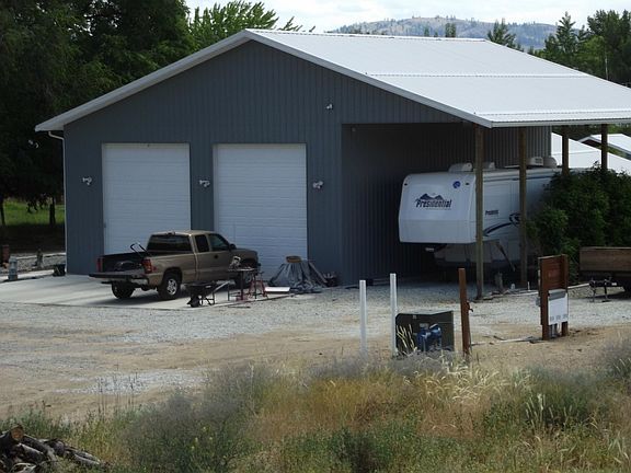 Omak shop with 1 bedroom 3/4 bath living quarters. This might just be what your looking for. Home features full security cameras, kitchen w/breakfast bar, stainless appliances, large living room, heat pump, recessed lighting, walkin closet, 24x24 covered patio, 2 200 amp services and low maintenace yard. Attached 36x42 shop w/heated floors for all your toys. Full covered RV hook up next to shop. 2 10x12 storage sheds. Owner contract available. Priced to sell at $215,000. H-2135/MLS651520