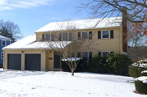 Peaceful views of conservation land on a quiet dead end street. Granite kitchen, large fireplaced living room and dining room with an office/playroom off the kitchen. 4 large corner bedrooms on the second floor. Fabulous, recently updated lower level boasts family room with fireplace, smooth ceiling with recessed lights, full bath and bedroom/office with separate entrance perfect for au pair or home office. 2013 Hot water heater, all doors are solid masonite (even closets). Oversized 2-car garage with lots of room for storage. Hardwoods most rooms~Most rooms have replacement windows, some Harvey, some Anderson. Come relax on the deck and if you need some shade there is a automatic Sunsetter awning!