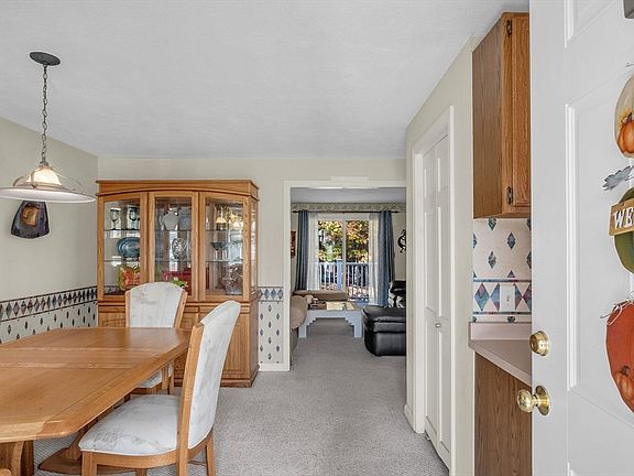 Welcome to this 2-bedroom, 1.5-bath end-unit townhouse, offering a perfect blend of style and comfort. Step into the spacious living room, complete with a fireplace, creating a cozy and sophisticated atmosphere. The open-concept kitchen and dining area are ideal for entertaining, with seamless flow to a private deck where you can enjoy serene outdoor living. The charming front porch adds to the home’s curb appeal. Upstairs, two generously sized bedrooms, complemented by a luxurious full bath. Wall AC units ensure cool comfort during the summer, while the fireplace sets the perfect tone for winter nights. The walkout basement offers ample storage and potential for future living space. Situated in a prime location with easy access to Routes 117, 190, and 12, and close to premier amenities, this home provides both convenience and refined living.