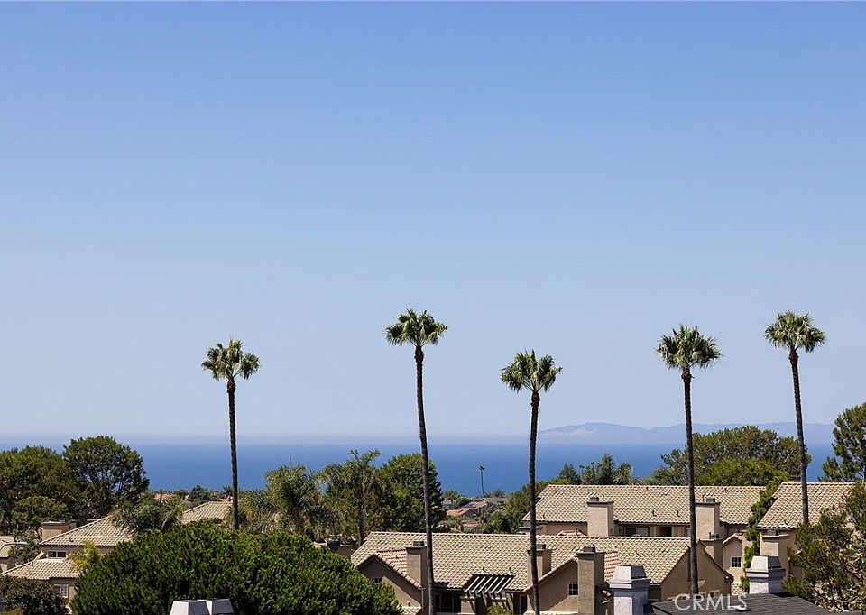 Experience elevated Dana Point coastal living in the exclusive gated community of Encantamar, where ocean views and sunset colors are your daily backdrop. This single-level home features a flowing, open concept with two bedrooms, two full baths, and extensive updates throughout, all oriented to enjoy the coastline and evening skies. Arrive to your private two-car garage with electric vehicle charging outlet and plenty of guest parking nearby. Inside, a formal foyer opens to light-filled living and dining areas with a custom fireplace and sliding doors to a view deck. A bar nook and outdoor living space make entertaining simple, and the southwest exposure frames nightly color over the water. Wide-plank floors guide you through the designer chef's kitchen, featuring quartz countertops, crisp white cabinetry, subway-tile backsplash, and stainless-steel appliances. Vaulted ceilings create an airy atmosphere in the eat-in breakfast nook and convenient quartz built-in desk, while skylights bathe the space in natural light. Both bathrooms have also been remodeled with elegant quartz finishes and upgraded fixtures. The thoughtful floor plan places the two bedrooms on opposite sides for maximum privacy and flexibility. The first spacious bedroom features vaulted ceilings, a large window with plantation shutters, and a generous walk-in closet. The primary suite serves as a private retreat, complete with a sitting area that captures stunning views, plus an upgraded en-suite bath with a double-sink vanity and large walk-in closet. Convenient in-unit laundry is located nearby. Located in the highly desired Encantamar community, you'll enjoy walking distance to shopping, dining, and theaters, with Dana Point Harbor, beaches, and the 5 freeway just minutes away. Community amenities include a year-round heated pool, spa, clubhouse, and fitness center. This is coastal living at its best, offering the complete package of views, location, and community lifestyle.