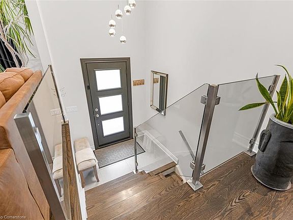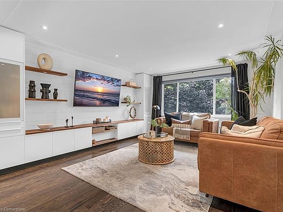 Welcome to 46 Terrace Dr, Dundas – a meticulously renovated raised bungalow that blends modern design with exceptional functionality. This home offers open-concept living at its finest, featuring three generously sized main-floor bedrooms and a luxurious 5-piece spa-inspired bathroom, complete with a glass-enclosed marble walk-in shower. The updated kitchen and living area are highlighted by quartz countertops, a contemporary island, stainless steel appliances, motorized blinds, feature walls, and a skylight that floods the space with natural light. The front entrance is accentuated with sleek glass railings, adding to the home’s modern appeal. The finished basement expands the living space, boasting a spacious family room with a wood-burning fireplace, a full 4-piece bathroom, a laundry area, and a fourth bedroom, perfect for guests or additional family members. Recent upgrades include a new roof, flooring, windows, and furnace/AC, all installed in 2017. Step outside to a private oasis in the backyard, featuring a 9-foot deep in-ground pool, a newly built rear deck, updated fencing, gazebo, and gates, all completed in 2023. Enjoy the tranquility of ravine living with the added convenience of modernized pool equipment, including a new safety cover and heater coil (2023). It's close to the trails, and easily accessible to the amenities of downtown. Don't let this one pass you by!
