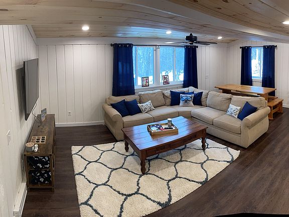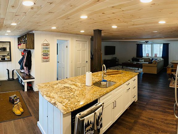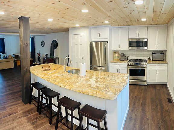 3 Story home with 1 car attached garage....new vinyl siding, windows and roofing installed in 2021 along with exterior foamboard insulation. FIRST FLOOR- Open concept entirely remodeled in 2022; mudroom, kitchen, 1/2 bath, and family/dining room. Vinyl plank flooring throughout, white shiplap walls and natural tongue & groove ceilings. Vermont castings wood burning stove. SECOND FLOOR- Bedroom 1 includes 1 queen size bed, Bedroom 2 includes full over full bunk bed, Bedroom 3 has built in twin-size bunk beds (4 in total). There is also a bonus room/ TV room which leads up to the 3rd Floor. THIRD FLOOR- Two bedrooms and 1 small full bathroom with shower stall. Washer/dryer in partially finished basement area. Primary heat is propane forced hot air with two separate zones (first floor and second floor), electric baseboard heat is also in every room as a backup and a wood burning stove. Chimney hill association with access to clubhouse, fitness center, indoor/outdoor pool. Walking distance to tennis courts, pickle ball, skating rink and sledding hills.
