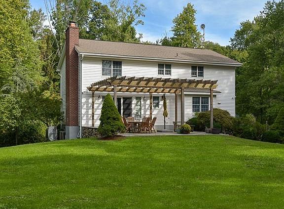 Fresh young center hall colonial with picture perfect backyard , expansive flat lawn, professionally landscaped, rimmed by towering trees. Gracious driveway approach hosts 12+ cars. Great neighborhood setting, yet private. Sun filled, pristine condition, easy living floorplan, 3 finished levels. Newly refinished oak hardwood floors throughout, crown moldings, bay windows, granite counters, new stainless steel appliances in eat-in kitchen, family room with raised hearth stone fireplace, on grade slate patio with pergola, 3rd bedroom large enough to divide, gracious master bedroom/master bath, freshly painted interior, large closets, ample storage, many special features. Low taxes, move-in condition, a gem, won't last.