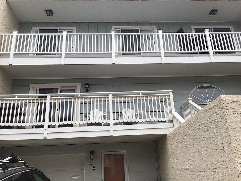 Beach living at its finest with this updated 2 bd / 2.5 ba split level fee simple townhome! Highlights include the three balconies, chef's kitchen, and large bedrooms with ensuite baths! Notice the wood floors and natural light on every level. A sitting room/office space welcomes you in with stairs leading up to the living room, featuring a tiled fireplace and access to a balcony through sliding glass doors. The third level includes the dining room, laundry room, half bath, balcony access, and the kitchen, equipped with granite countertops, stainless steel appliances, tile backsplash, cherry cabinets, and pendant/recessed/under cabinet lighting! Head upstairs to reach the two bedroom suites, both with balcony access and dark wood vanities. One contains a tiled glass door shower, while the other has a tiled glass door shower/tub. Mini-split A/C and Forced Air heating. All new windows and doors. One car garage. Located near beach clubs, golf, parks, and restaurants! Easy access to Garden State Pkwy and NYC - perfect for a commuter! Buyer should verify all information.