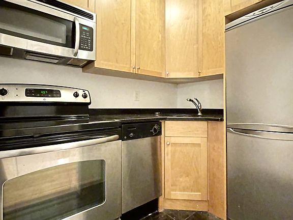 Park block studio. Extra large living space with a separate kitchen and dressing area. Entrance foyer with a coat closet provides even more room. Kitchen is updated with stainless steel appliances, dishwasher and microwave.