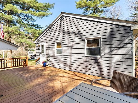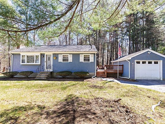 ***OFFER DEADLINE 4PM 4/28 - This ranch style home has been lovingly maintained, offering 3 beds, 1 bath, Hardwood floors, a large wood deck and a 1 car garage. Located on the North side of Hanson very close to the Hanover line, on almost 1 acre of land in a serene neighborhood. Through the side entrance, you will be welcomed into the galley kitchen, with Wood cabinets, SS range & Dishwasher, Corian countertops & Tile backsplash. The kitchen opens into the dining area and the family room, complete with built-ins & the 1st of 2, fireplaces. There are hardwood floors & tile throughout the 1st level. In the basement you will find an additional 600+ sq feet of living space with 3 finished rooms, great space for a play room/game room or additional family room. The smaller of these rooms has a cedar closet and is currently being used as an office. Many updates include Central A/C & Heat (5 yrs), Whole house generator, Roof 2010. New septic being installed prior to close