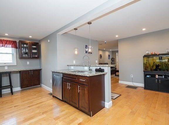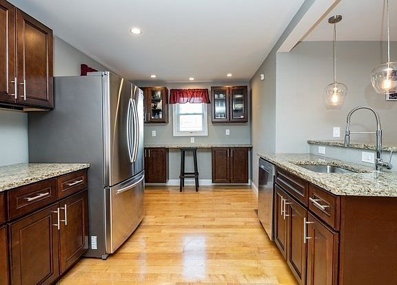 Welcome to this stunning 3-bedroom, 2-full-bath home, perfectly situated on a spacious 13,000+ sq. ft. level lot in the highly desirable Diamond District of Lynn. Step inside to discover a bright, open layout featuring gleaming maple flooring throughout. This move-in ready home has been meticulously maintained and offers exceptional comfort and quality. The custom-designed kitchen showcases maple cabinets, granite countertops, stainless steel Samsung appliances, a wine chiller, and a built-in desk area—perfect for cooking, entertaining, or working from home. The kitchen flows seamlessly into the dining room, creating the ideal space for gatherings and everyday living. Enjoy the convenience of being within walking distance to the Swampscott Commuter Rail Station, King’s Beach, and Swampscott’s waterfront commercial district. This home truly has it all—modern comfort, timeless style, and an unbeatable location. Don’t miss your chance to make it yours!