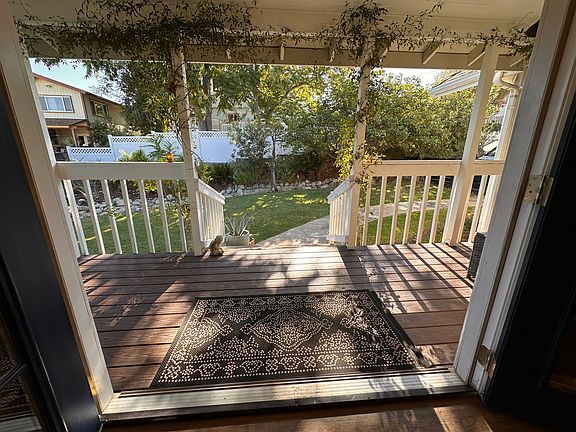 Welcome to the quintessential indoor-outdoor lifestyle in your fully stocked and furnished home nestled in Oak View, California. Furnishings are optional for longer term tenants. Situated on an oversized lot, you'll find yourself surrounded by plants, fruit trees and a feeling of spacious tranquility. Your backyard is entirely private so you can unwind and escape in peace. A large, open kitchen invites entertaining, cooking, or BBQing on a Lynx professional grill on the wrap-around veranda with additional seating. There are 3 bedrooms; one king bed, one queen and a single daybed - comfortably sleeping 5 people. The master bedroom has an ensuite bath and large walk-in shower and closet. The additional two bedrooms have ample closet space, one with a desk and a view of the front yard's fruit trees, the other with a view of Sine Qua Non's famous vineyards (Sine Qua Non means a thing that is absolutely necessary). The 2nd full bathroom and laundry are situated in between these two bedrooms. Downstairs, you'll find a bonus room with a professional ping pong table. Swing open the french doors and let the back patio vibes in. This patio is an ideal spot for enjoying guests and entertaining. An additional Weber charcoal BBQ is available with Restoration Hardware patio furniture under the pergola, lounge chairs for sunning, an outdoor shower for cooling off, Adirondack chairs surround a fire pit and a planter box grows thyme, sage, rosemary, mint, lavender and other seasonal herbs. Enjoy this gated outdoor living without the dangers of wildlife or the excessive bugs of more rustic spots. Still, you're minutes from the most beautiful hiking trails in Southern California in the Los Padres National Forest, and conveniently located directly between Ojai and Ventura Watkins Way is a private, beautifully kept residential street with well manicured yards. Google maps cannot take photos on it, so while you'll be unable to do a "google drive by (this just adds to your privacy, ultimately) we welcome appointments for a walk-thru with advance notice to the current tenants. We prefer renting to longer term tenants (up to 6 months) but are open to 30-day minimums. Pets are okay upon approval with refundable pet deposit | Credit and background check will be conducted | 1 Mo rent deposit | Available immediately All Utilities Included | Lease duration: Min 1 mo, Max 6 mo | Pets okay | No Smoking | Furniture, decor optional | Ample parking in on site | $4,990 Deposit