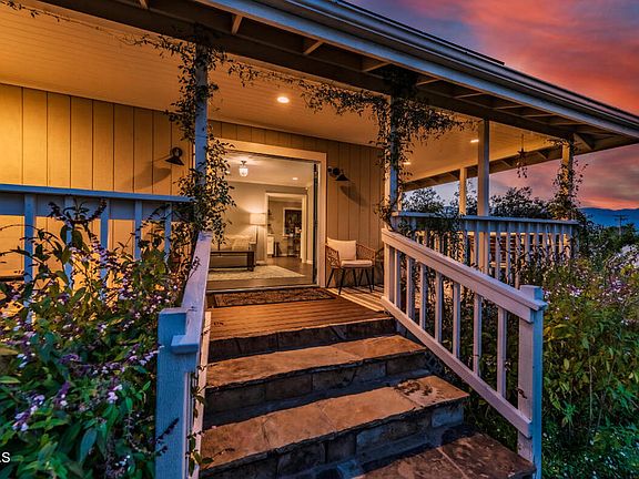 Welcome to 46 Watkins Way. This recently updated 3-bedroom 2-bathroom home boasts quality materials and styling, with many details carefully crafted to create a beautiful home that has a modern farmhouse feel. Enjoy the lush landscaping and mature fruit trees as well as a large lawn and rock river. The kitchen features quartz countertops and custom wood cabinetry with built-ins and thoughtful storage features, perfect for those who love to cook. Step outside to the wrap-around porch to dine alfresco and take in the stunning mountain views.The living room features a fireplace and a flowing floor plan with vinyl wood-like plank flooring throughout. Other amenities include, updated hardware, crown molding, and wainscoting to add to the home's appeal.The spa-like bathrooms are styled with subway tiling, while the bedrooms boast barn door closets and views of the surrounding mountains. Enjoy the famous Ojai valley sunsets from the wrap-around porch, heated spa, or various seated entertainment areas.Entertain guests around the outdoor fire pit and cool off in the above ground pool, or relax under the outdoor pergola. Enjoy fresh fruits from the apple, apricot, peach, lemon, orange, and tangerine trees, or tend to the raised herb and vegetable planters.The property offers a large driveway, with a fenced-in grass yard and a separate fenced concrete backyard. The finished basement is a perfect space to tackle your DIY projects and flows nicely to the backyard.Additional features include a large detached two-car garage with storage loft and plenty of parking. Nestled back off Highway 33, just moments away from shopping, and local favorite restaurants. This home is a must see!