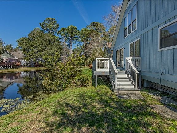 Great 4 BR/3BA free standing house. First floor has 2 bedrooms and 3 full baths, washer, dryer closet. Upstairs has 2 bedrooms, 2 closets, full bath w/ closet plus a bonus area. Located at the base of the bridge to HHI w/ quick access to HHI beaches! Close to Old Town Bluffton, Bluffton shopping & restaurants. Monthly regime fee of $458. includes turnkey property management, exterior home maintenance, including roof, siding including all exterior maintenance to home, insurance, common area, electric, common sewer, common water, flood insurance, amenities, landscaping, trash pickup, pest control, pool maintenance & more This home is as-is.
