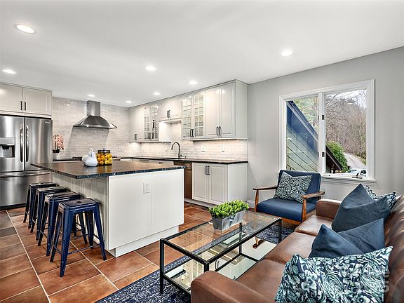 The heart of the home is its recently remodeled gourmet kitchen, featuring luxurious Via Lactea leathered granite countertops, elegant off-white cabinetry with glass-fronted uppers and interior lighting, and a premium 36" Superiore Italian gas range. The expansive island includes large drawers, a built-in microwave, and clever hidden storage on the back. Adjacent to the kitchen, a cozy sitting area and a screened-in sunroom create perfect spots for relaxation.