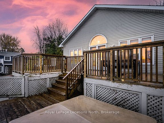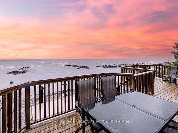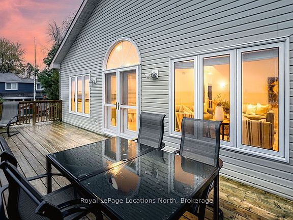 Welcome to your dream waterfront retreat on the shores of Georgian Bay, where every sunrise and sunset feels like a private show. Built in 2012, this 4-bedroom, 3-bathroom property was designed to capture the beauty of the bay from every angle. Ideally located halfway between Collingwood and Wasaga Beach, you'll enjoy the best of both worlds: peaceful waterfront living and quick access to skiing, dining, and shopping. The covered front porch is the perfect place to have a coffee or watch the rain fall on a stormy night Step inside to a spacious bungalow, with an open-concept layout filled with natural light and panoramic views of Blue mountain and the most amazing sunsets. The kitchen and living area offer vaulted ceilings focused around a gas fireplace, together making it the perfect cozy space, while the large kitchen has lots of storage and counter space for gatherings with family and friends. The main floor primary suite offers a private space with a 4-piece ensuite featuring a soaking tub, glass shower, and walk-in closet. Two additional bedrooms on the lower level plus a rec room make it a great family home or cottage Outside, unwind on the tiered deck, lush landscaping, and spend your days on your private waterfront, swimming, kayaking, and making lasting family memories.This property truly captures the Georgian Bay lifestyle- relaxing, active, and connected to nature - whether you're paddleboarding in summer or skiing in winter.