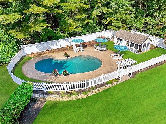 Nestled in a private, estate-like setting, this magnificent Colonial offers unmatched luxury & elegance. The stone horseshoe driveway and professional landscaping greet you with impressive curb appeal. The heart of the home is a luxury kitchen, with chef-grade appliances & custom cabinetry. Entertain guests in the formal living room, complete with a wood-burning fireplace, or in the spacious family room with custom built-ins & gas fireplace. The 4-season sunroom is a serene space, perfect for relaxing in any weather. The beautifully landscaped grounds include an impressive inground pool zone with/a Reeds Ferry cabana & pool house. The back deck & patio provide the ideal setting for outdoor gatherings, while the property offers space for a potential stable for equestrian enthusiasts. The primary suite provides a tranquil escape with an ensuite bath, & the finished basement offers a rec area, home gym, & storage. This thoughtfully curated estate represents the pinnacle of refined living.